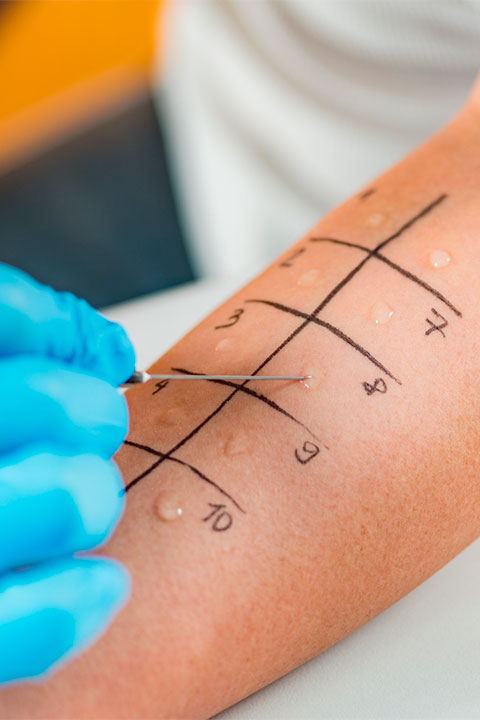 Esto solamente se puede poner en evidencia con un tipo de examen de piel que usa varias diluciones del cada alergeno. Se solía llamar SET (Skin End-point Titration) y ahora se le conoce como IDT (Intradermal Dilutional Test).